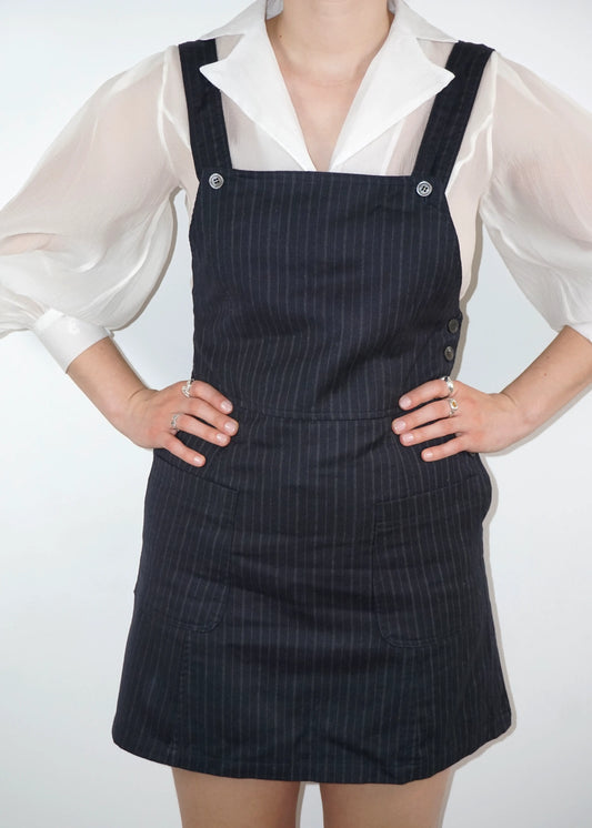 Vintage Stefanel Woolen Pinafore Dress in Pinstripe